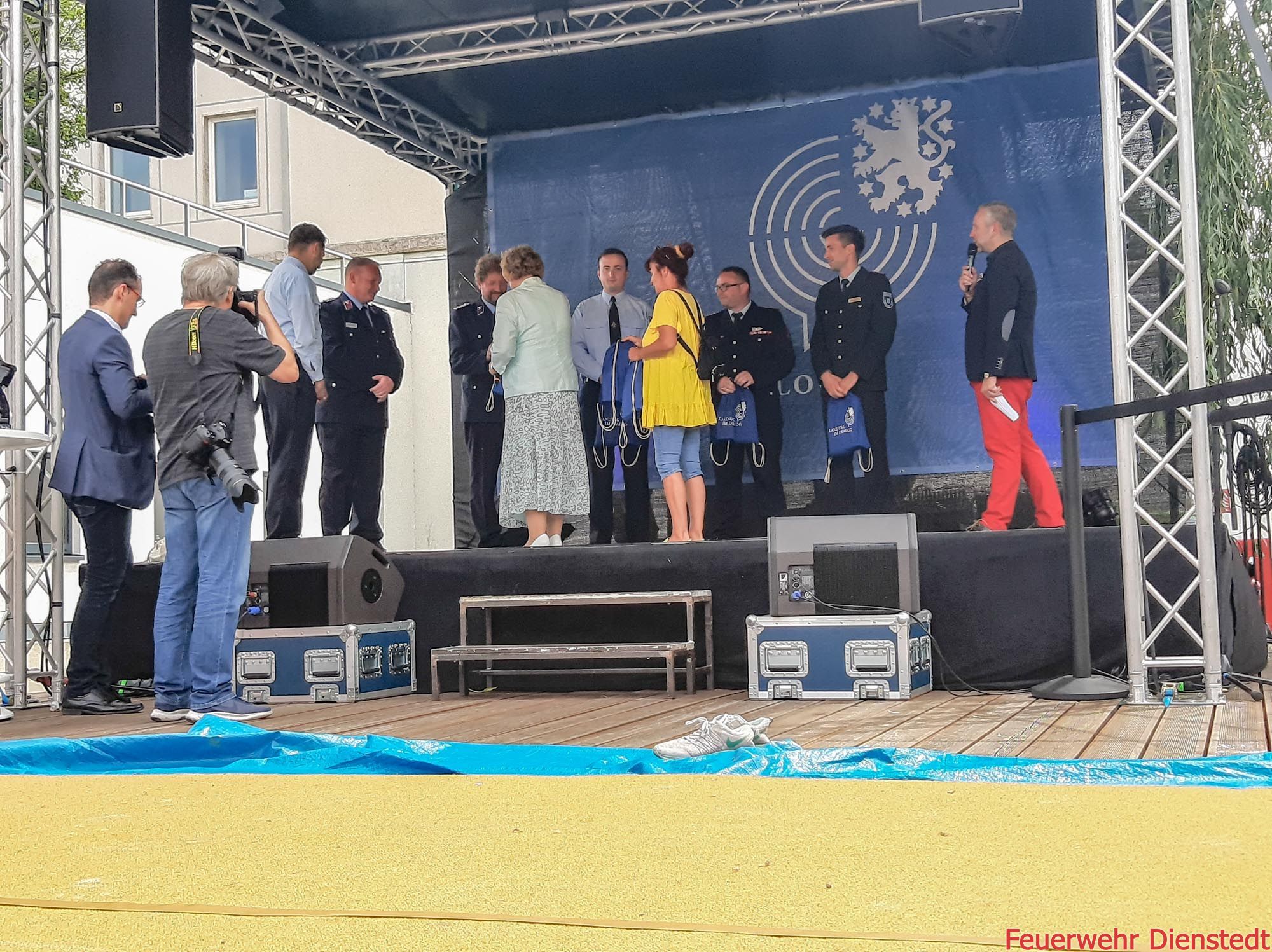 Nach einem vom Landtag gesponserten Mittagsessen und einer Führung durch das Landtagsgebäude während der man hinter die Kulissen des Parlamentsbetriebs schauen konnte, fand auf der Bühne im Innenhof die Begrüßung der Einsatzkräfte statt. Die Ehrung durch die Landtagspräsidentin dauerte nur fünf Minuten und war als Programmpunkt unfestlich zwischen Vorführungen von Erfurter Sportvereinen eingebettet. Da außerdem parallel dazu im Plenarsaal eine Podiumsdiskussion stattfand, war das öffentliche Interesse gering.